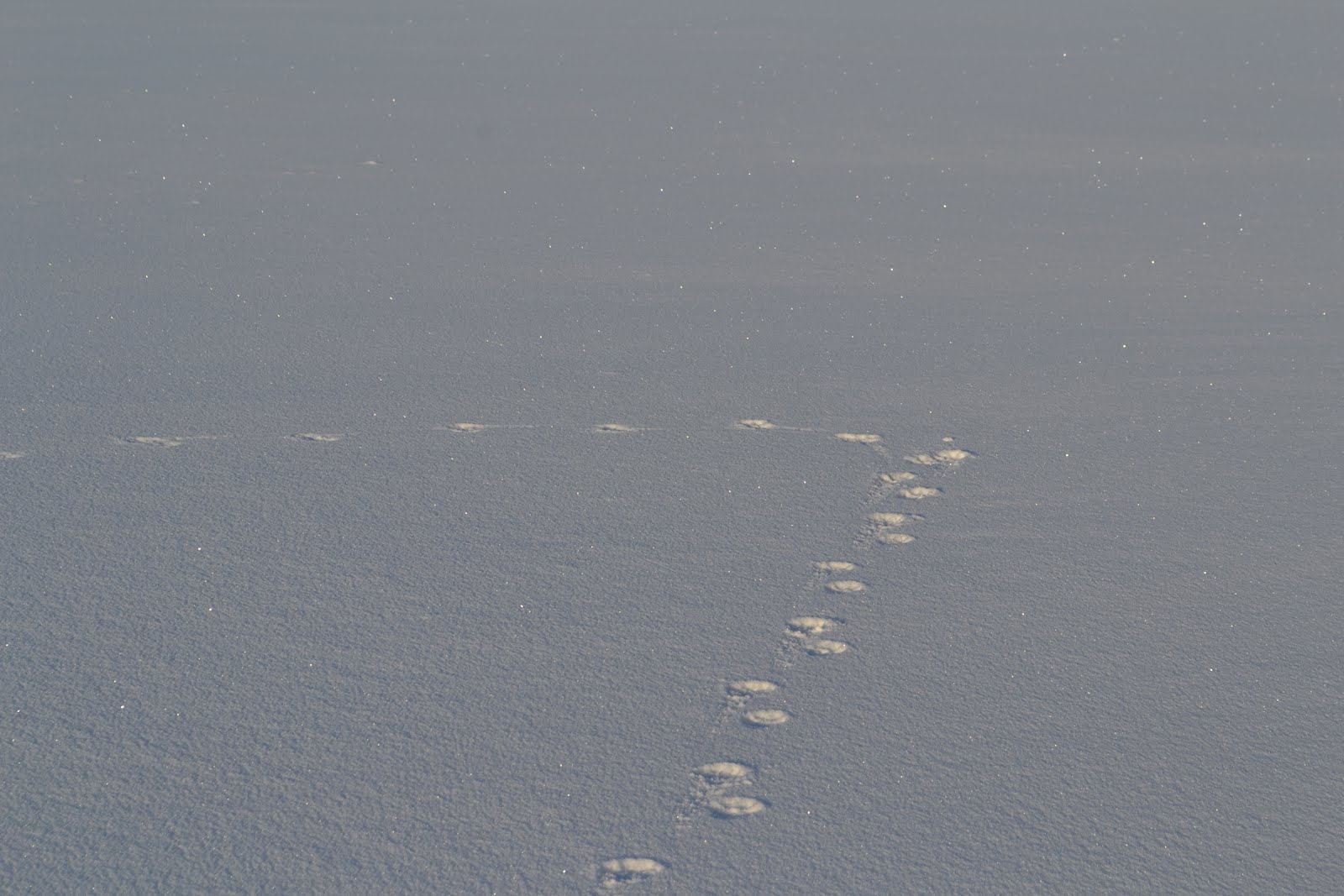 Tässä se oli keskellä jäälaukeutta ilmeisesti säikähtänyt jotakin ja vaihtanut nopeasti suuntaa ja askellajia.